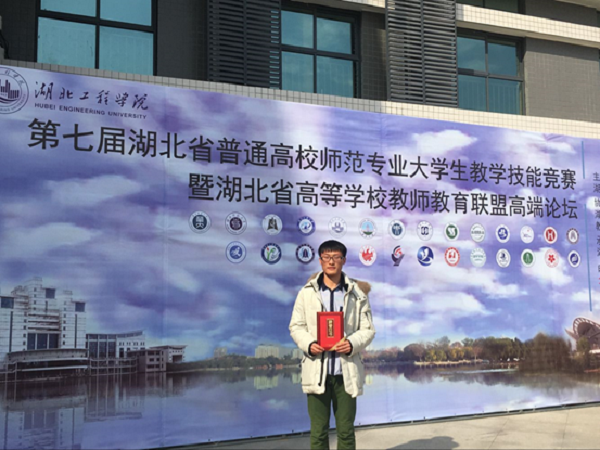 11月25日—27日,由湖北省教育厅主办的第七届湖北省普通高校师范专业老员工教学技能竞赛在湖北工程公司举办。公司2013级数学与应用数学专业郭淇凯斩获本次竞赛数学组一等奖,至此公司学子已连续两年在省师范生技能竞赛中获得一等奖。