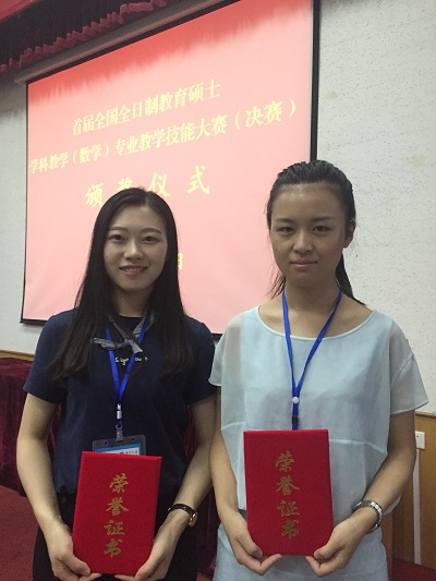 9月24日至26日,首届全国高校全日制教育硕士学科教学(数学)专业教学技能大赛决赛在山东省烟台市鲁东大学举行。公司2015级硕士研究生刘小铭和谢婉玲均获全国二等奖,指导老师刘芸被评为“优秀指导教师”。