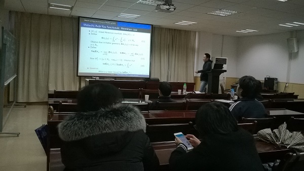 11月22日下午,中国科学技术大学数学公司王作勤教授、上海交通大学数学科学公司李逸研究员应邀来访公司,并在院201学术报告厅为师生分别作了题为“From lattice points to eigenvalue counting”和“Fully nonlinear PDEs in complex geometry”的报告。