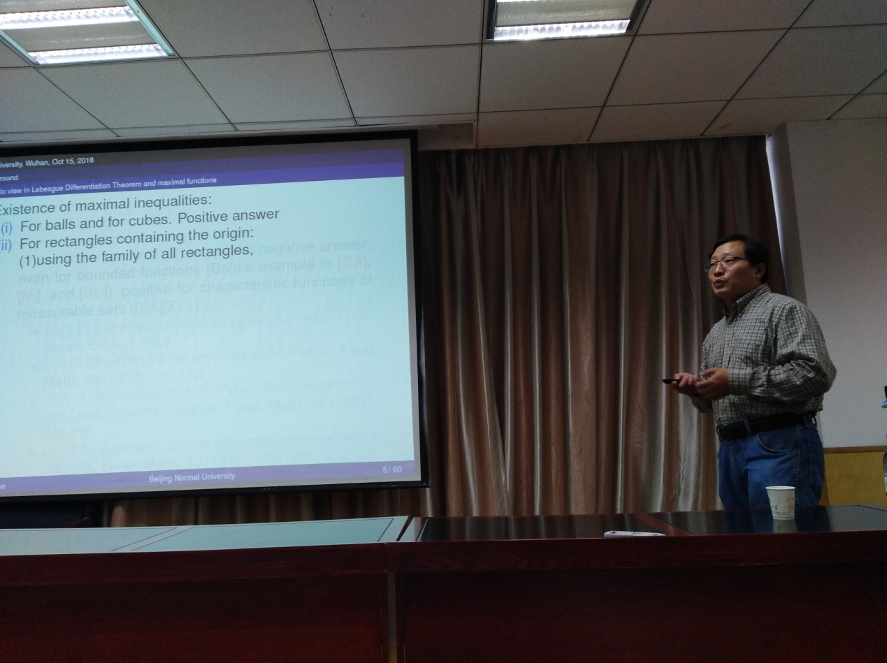 薛庆营教授的报告详细讨论了多线性强极大算子的正则性与连续性。其内容精彩,富有启发性,引起了在场师生的极大兴趣。报告结束后,薛教授与在场的师生对于报告的内容进行了深入的讨论交流,大家都表示获益匪浅。