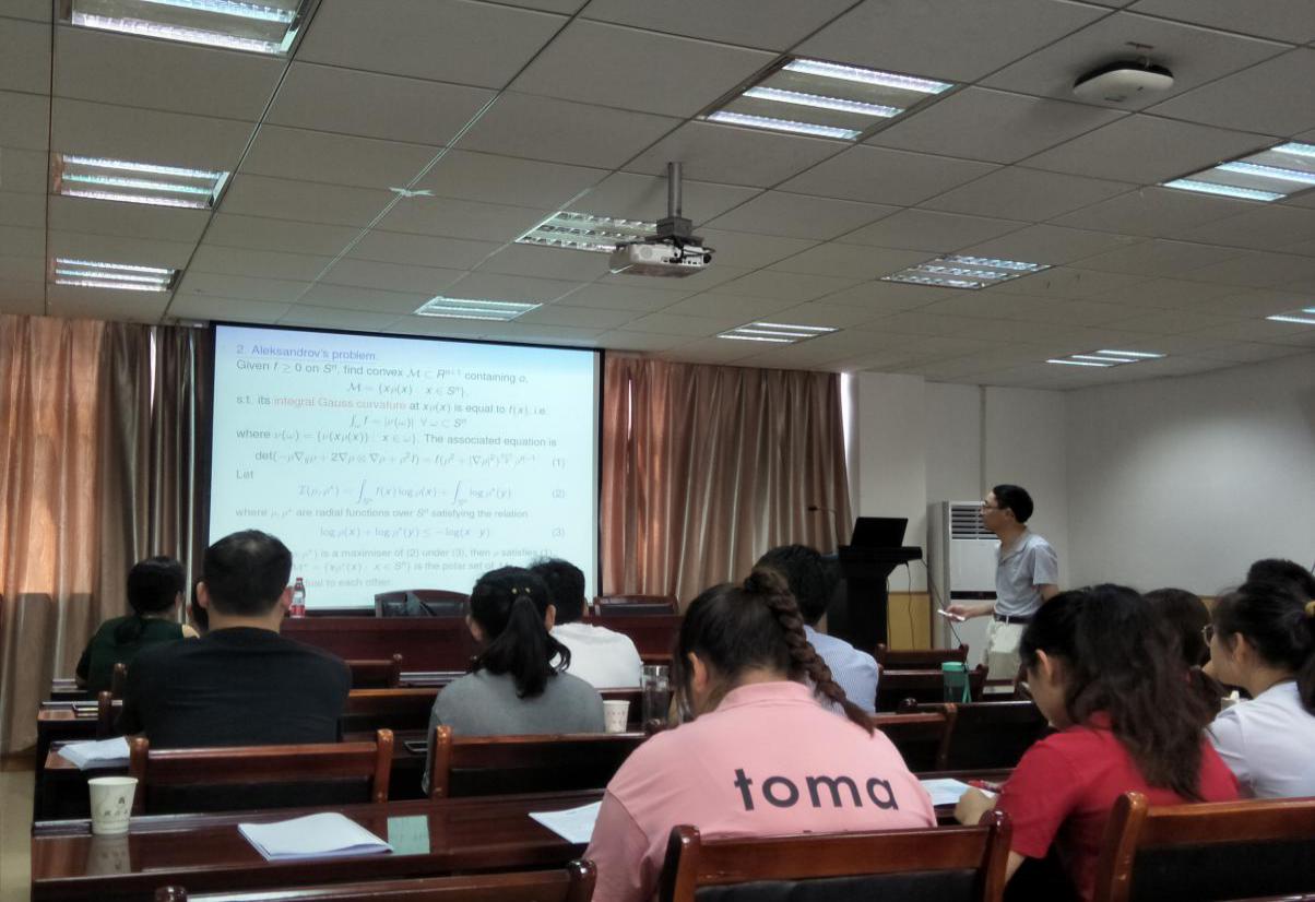 2019年6月4日上午,澳大利亚国立大学汪徐家院士应邀来访公司,并为相关专业的教师与研究生做了题为“Convex hypersurfaces of prescribed curvatures”的学术报告。