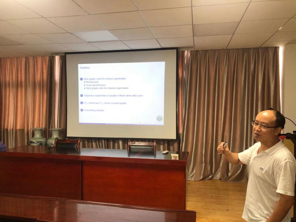 2021年7月12日,华中师范大学胡智全教授和李书超教授应邀来访公司,并在公司201报告厅分别作了题为《Spanning trees with given number of leaves in agraph》和题为《On split graphs with three or four distinct (normalized) Laplacian eigenvalues》的学术报告。