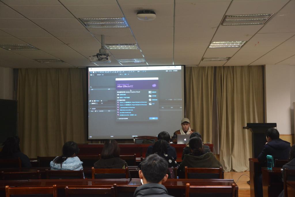 郎涛从实例出发,一步步把自己运用pr和ae等视频编辑软件增加并修改特效,具体地教给同学去应用。他形象的将编辑软件比喻成加工的工厂,视频的所有的零件需要自己一步一步来组装。他用自己的亲身经历把一些小技巧一一教给同学并且分条缕析地介绍剪辑视频,增加字幕等一些应用。他还就员工干部对数码影视编辑软件应用的一些疑惑进行解答。