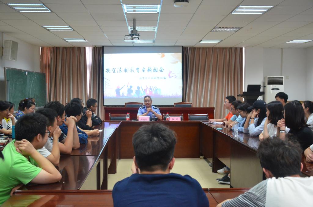 5月9日下午,武汉市公安局治安支队中队长尹拥军警官参加了公司院数学与应用数学专业1602班安全法制主题班会,并为师生作了安全防范知识讲座。公司党委副书记侯勇,公司党委书记游春林,保卫处长康健,校自育委员会、班主任及员工代表出席了此次班会。