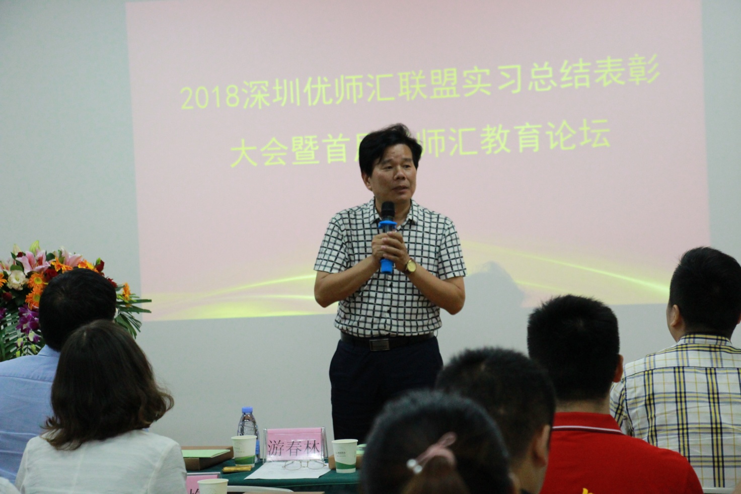 本次议程除了实习总结表彰留任,同时也是首届优师汇教育论坛。南粤商公司经理张少勇、原邦德教育教科院经理李德先、yl34511线路中心深圳员工会执行会长杨剑先后进行了分享,并对优师汇的发展前景表示祝福。