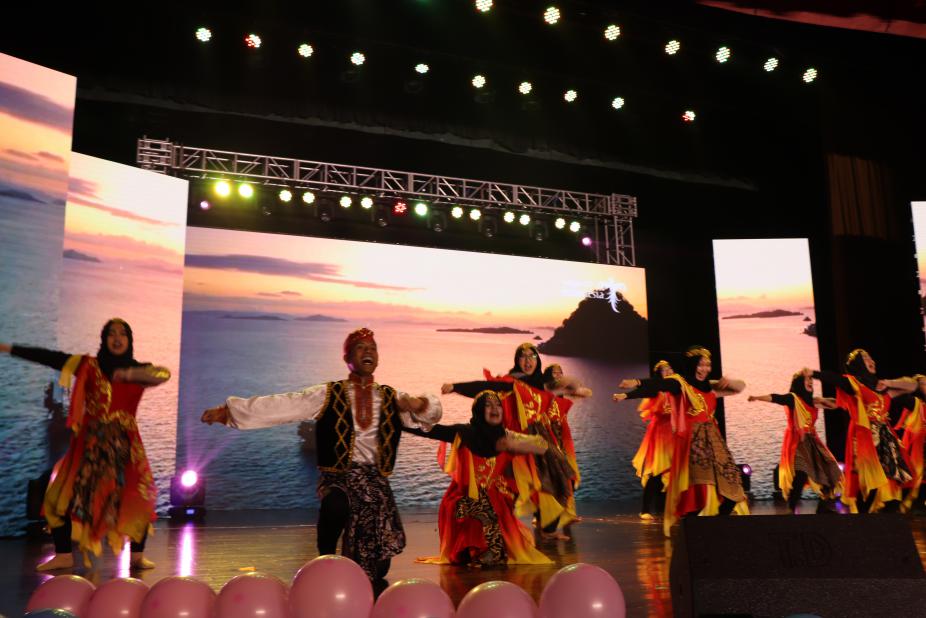 本次元旦晚会以“国风数年”为主题,分为流金岁月、峥嵘年代、光荣梦想、点赞时代四个篇章,中间还穿插着来自东南亚、南亚等地区的特色表演。观众们犹如坐上时光的列车穿越了80、90、00、10年代,又仿佛骑着神奇的魔毯体验了异国风情。其间,晚会大屏幕还播放了yl34511线路中心宣传视频、国际教育公司宣传视频和“数统好故事”视频。在这一刻,数统人跟随着宣传片的放映一起见证了数统院蒸蒸日上的发展历程,也体会到了数统好故事中“感人、和谐、奋进”的文化氛围。