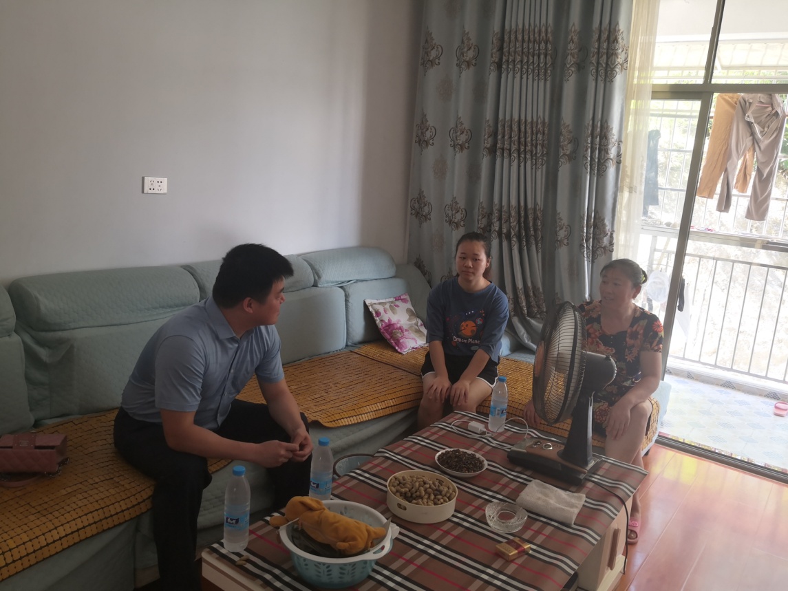 公司一行首先来到18级信息与计算科学专业杜莎同学的家中,映入眼帘的是一幢幢整齐明亮的居民楼,是当地政府为建档立卡居民集中修建的。陆书记与建档立卡员工、家长亲切交流,详细了解了员工的家庭情况、学习情况以及疫情情况等,倾听员工和家长谈对公司的建议以及员工对自身成长发展的期盼,向员工发放了公司的慰问金。员工家长表示,感谢公司、老师对员工的关爱,也感谢政府的精准帮扶的好政策,叮嘱孩子一定要用优异成绩回报公司和社会。