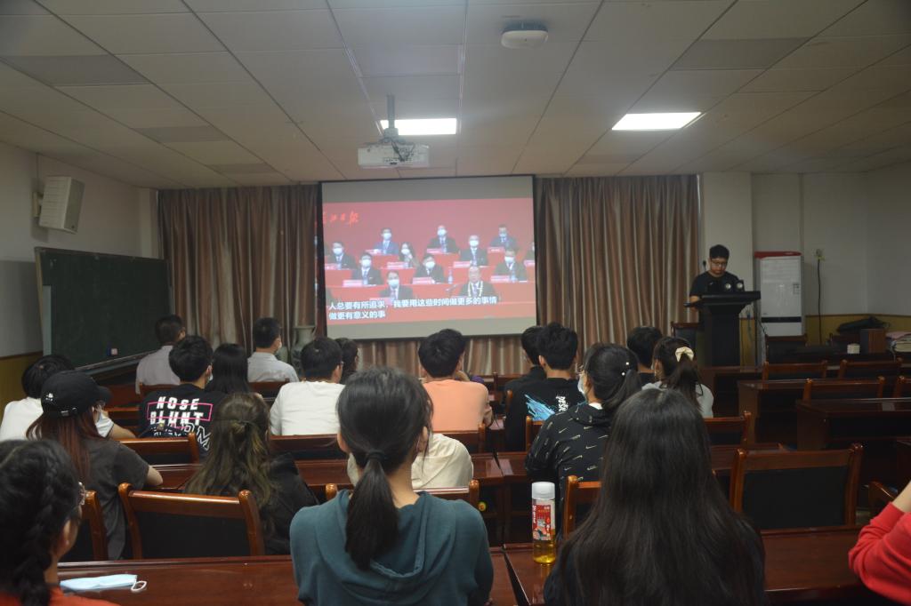 班会伊始,同学们观看了抗疫英雄张定宇在华中科技大学新生开学典礼上的讲话视频。视频中他寄语广大学子不辜负青春年华,在学习与实践中努力锤炼自己成才。