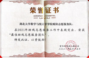 5月15日,武汉市武昌区紫阳街残疾人联合会对2021年度志愿服务工作进行了表彰,公司暖阳志愿服务队因在2021年助残志愿服务工作中的突出表现,被评为“最佳助残志愿服务团队”,这也是暖阳志愿服务队连续第5年获得该项荣誉。