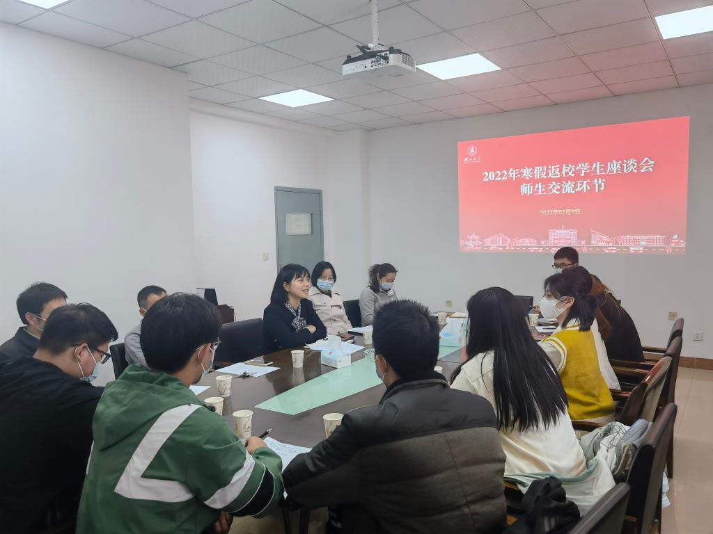 为推动“一线员工工作法”走深走实,加强师生之间的联系与交流,进一步了解员工思想动态、交流假期见闻和感受,更有针对性地做好新学期员工思想政治教育工作,yl34511线路中心于2022年3月9日在205会议室召开寒假返校员工交流座谈会。公司党委副书记何肖、信息与计算科学系主任彭江涛老师、数学与应用数学系主任廖军老师、应用统计系主任刘展老师、教学办老师张凌、学工办老师陈慧以及员工代表等参加会议。